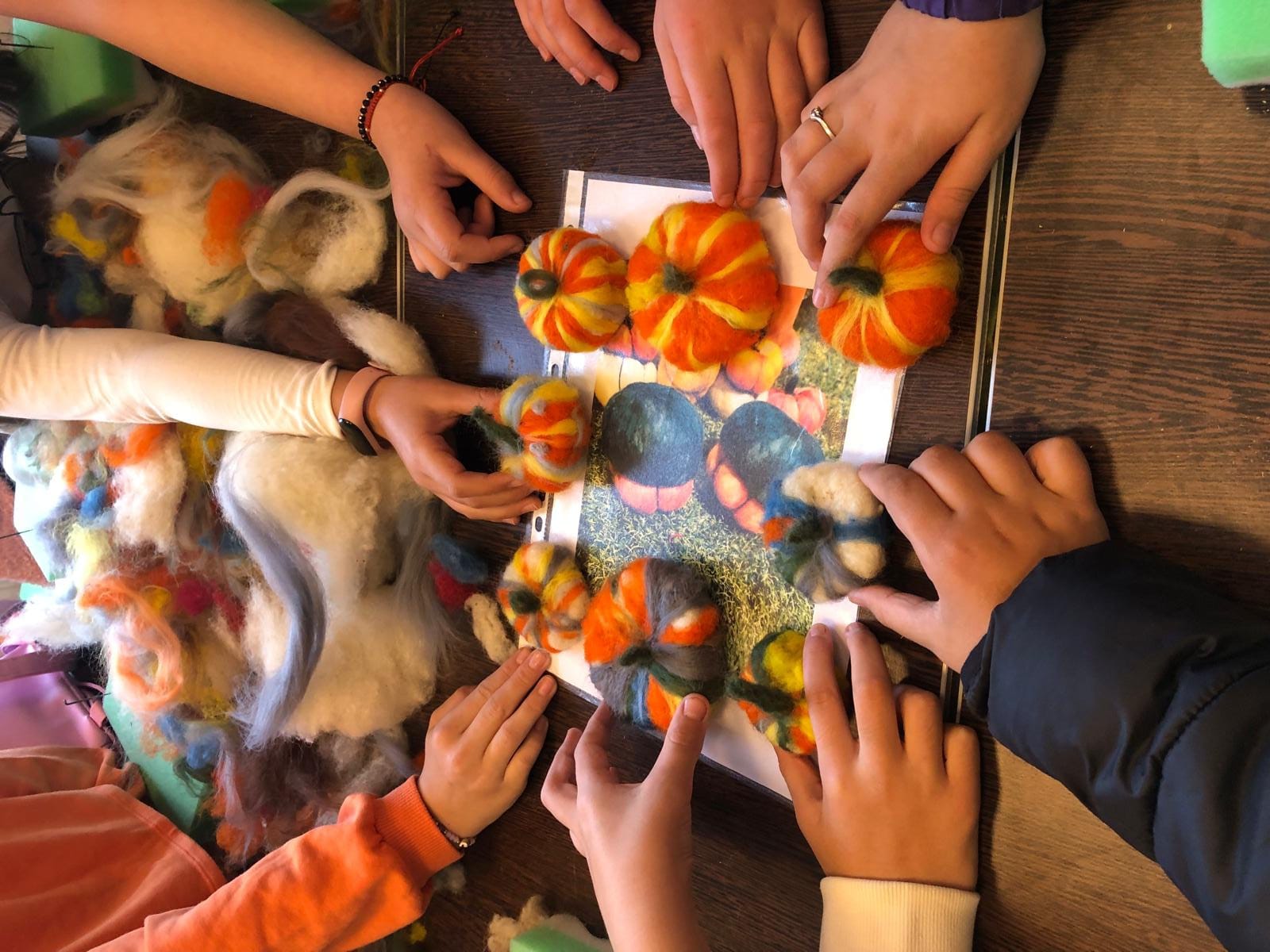 Pentru organizarea acestui atelier se va folosi lâna brută, doar spălată și scărmănată. Dacă cea mai cunoscută metodă de împâslire este cea umedă, de data aceasta se va folosi împâslirea uscată, unde acele cu zimți vor împunge firele de lână făcându-le să se prindă unele de altele, formându-le în pâslă, un material dens, durabil și compact fără a fi nevoie de țesut sau cusut. Lâna care se va folosi va fi colorată ceea ce va permite crearea de obiecte utilitare dar și decorative.